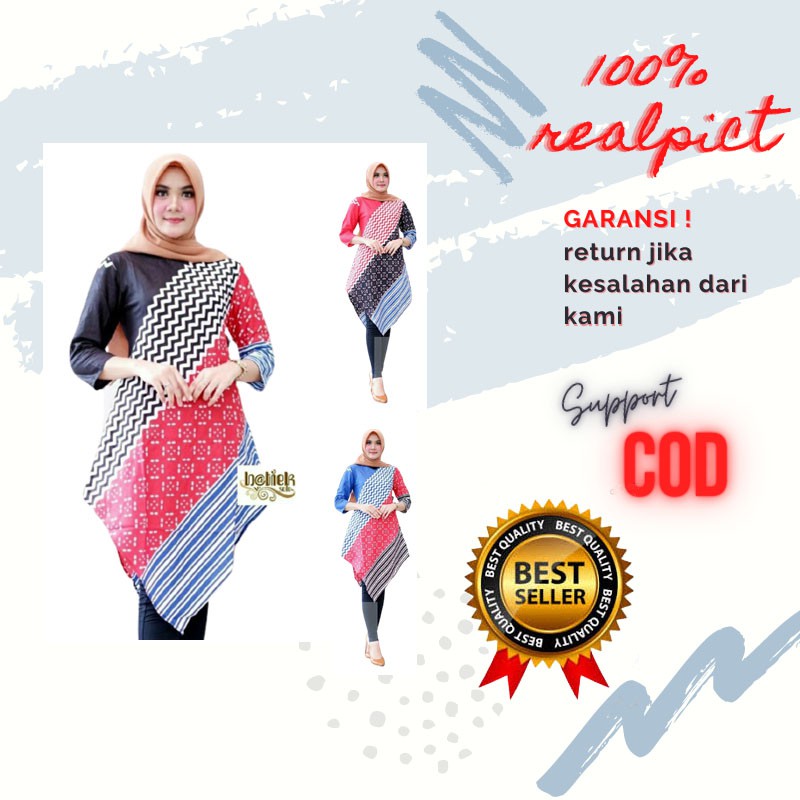 Name: Dt Colletion-tunik Batik Wanita/cewek Lengan Serut Pekalongan Motif Kipas Hitam
