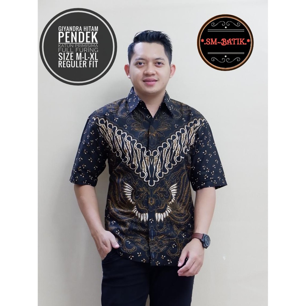 Name: Giyandra Hitam Kemeja Batik Solo Lengan Pendek Sm Atasan Modern Premium Perwira Tumurun Klasik